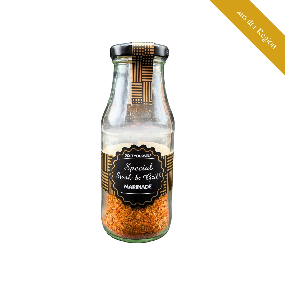 Do it yourself Special Steak- & Grill Marinade: Die Special Steak- & Grillmarinade verfeinert das Grillgut auf eine einzigartige Weise. Einfach die Flasche mit 50 ml Bier, 100 g Senf & 50 ml Öl auffüllen, verschließen und schütteln. Die Marinade wird anschließend auf das Grillgemüse, Steak oder den Grillkäse gegeben. (Füllmenge 14g)