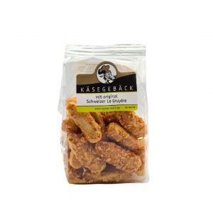 Käsegebäck: Das Käsegebäck mit dem Schweizer Gruyère ist der perfekte Snack für zwischendurch. Der knusprige Teig und die leicht würzige Note sorgen für den perfekten Knabberspaß.(Füllmenge: 100g)