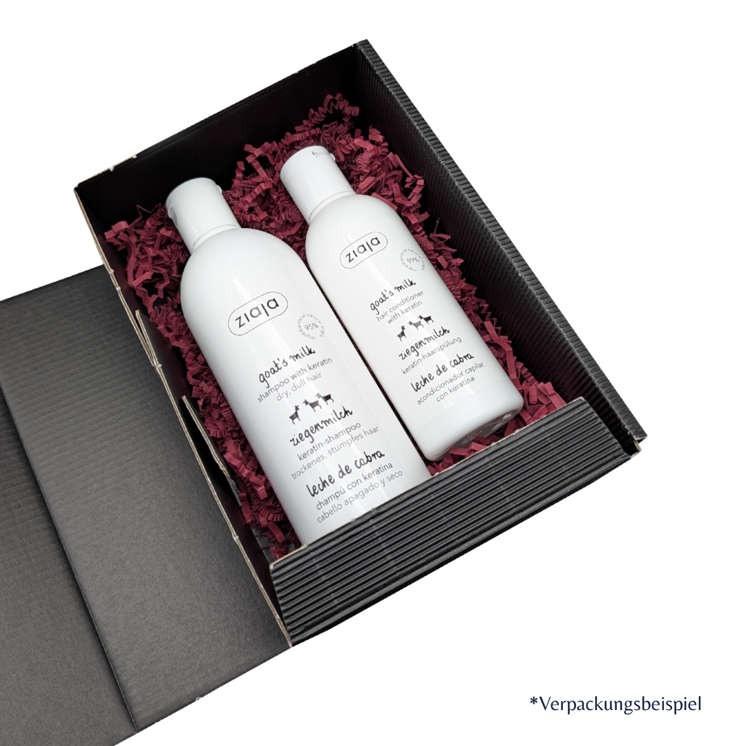 Erleben Sie die revitalisierende Pflege unseres Ziaja Haarpflegesets mit Keratin und Ziegenmilch – die ideale Lösung für trockenes und strapaziertes Haar. Verpackt in einem schönen Präsentkarton und inklusive kostenloser Grußkarte eignet sich das Set perfekt als Geschenk für Ihre Liebsten – oder um sich selbst etwas Gutes zu tun.